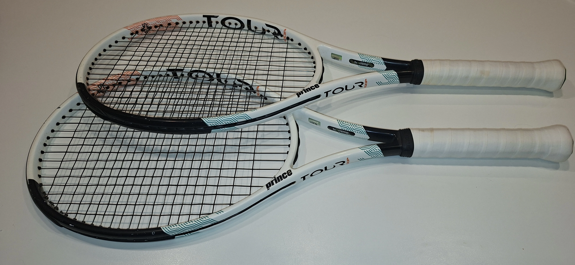Vendo coppia di telai Prince ATS Tour 100P, manico L3, piatto 100", peso 305g, pattern 18x20 incordate con Solinco Confidential 1,15 Racchette in buone condizioni, sempre usato overgrip Prezzo per racchetta singola 80€