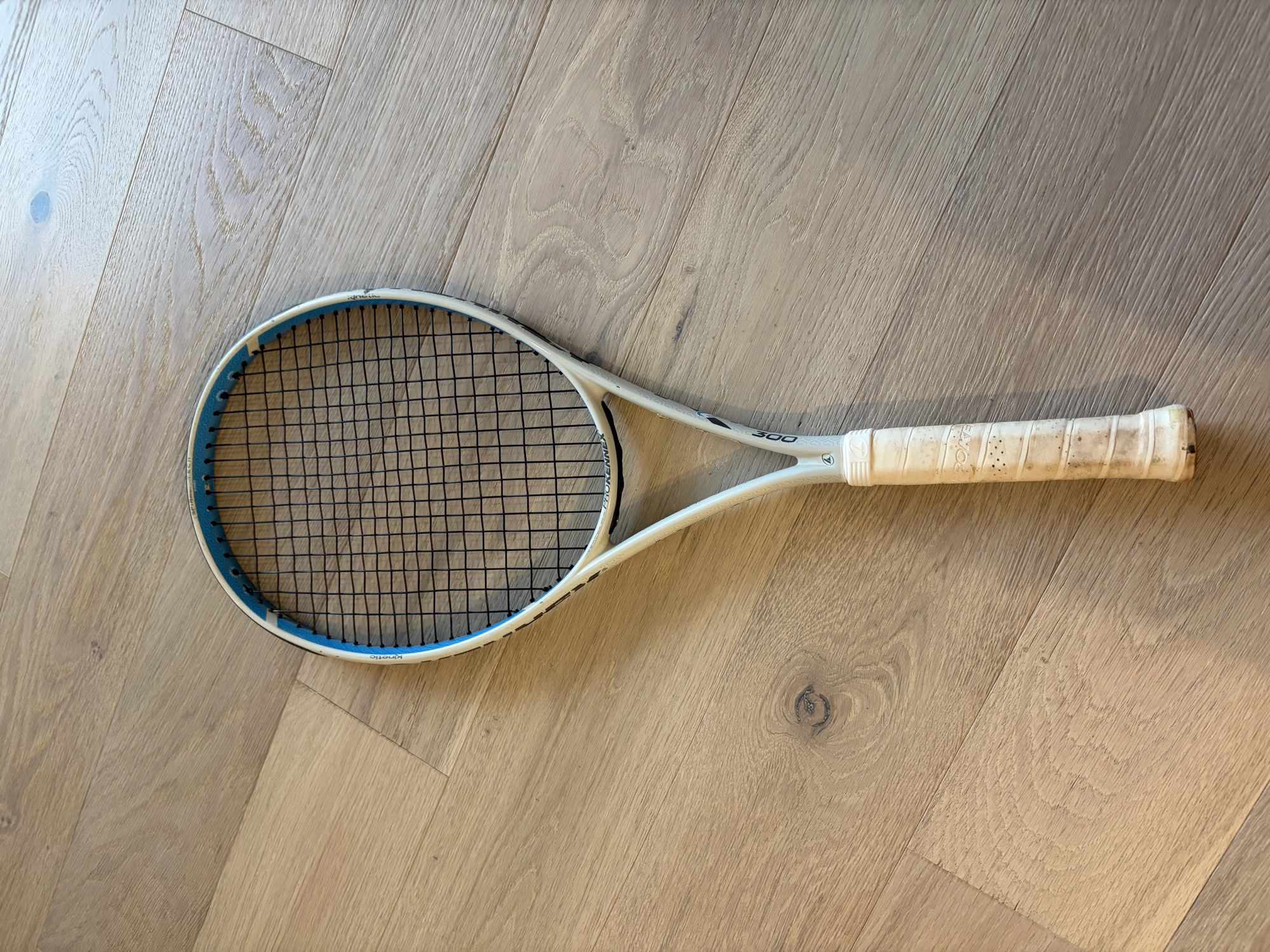 Racchetta Pro Kennex Kinetic Ki 5 di peso 300gr. Grip #2 (sarebbe la grandezza del manico). Le corde sono nuove. L'over grip va invece messo. Ottima racchetta per chi soffre di problemi al braccio o al gomito. Presenta qualche ammaccatura che non incide sulla prestazione della racchetta