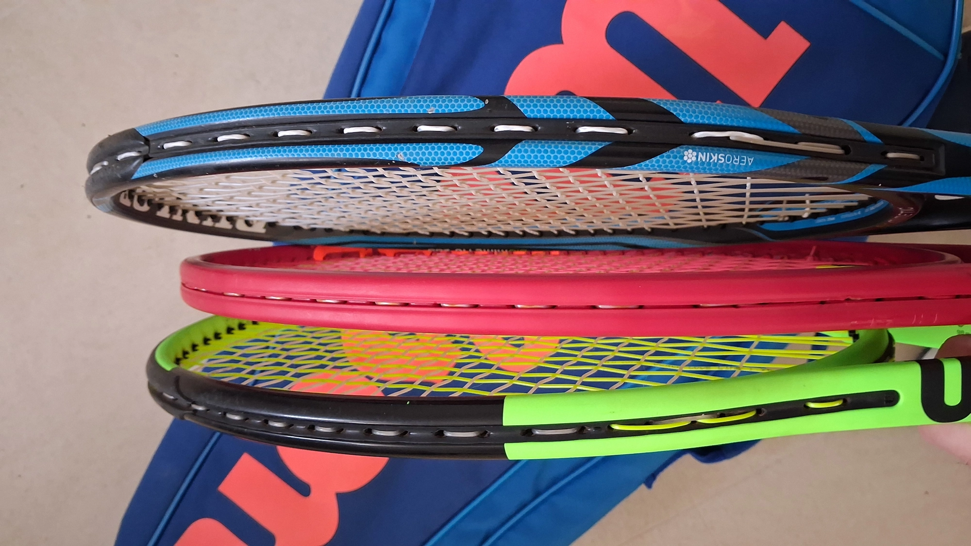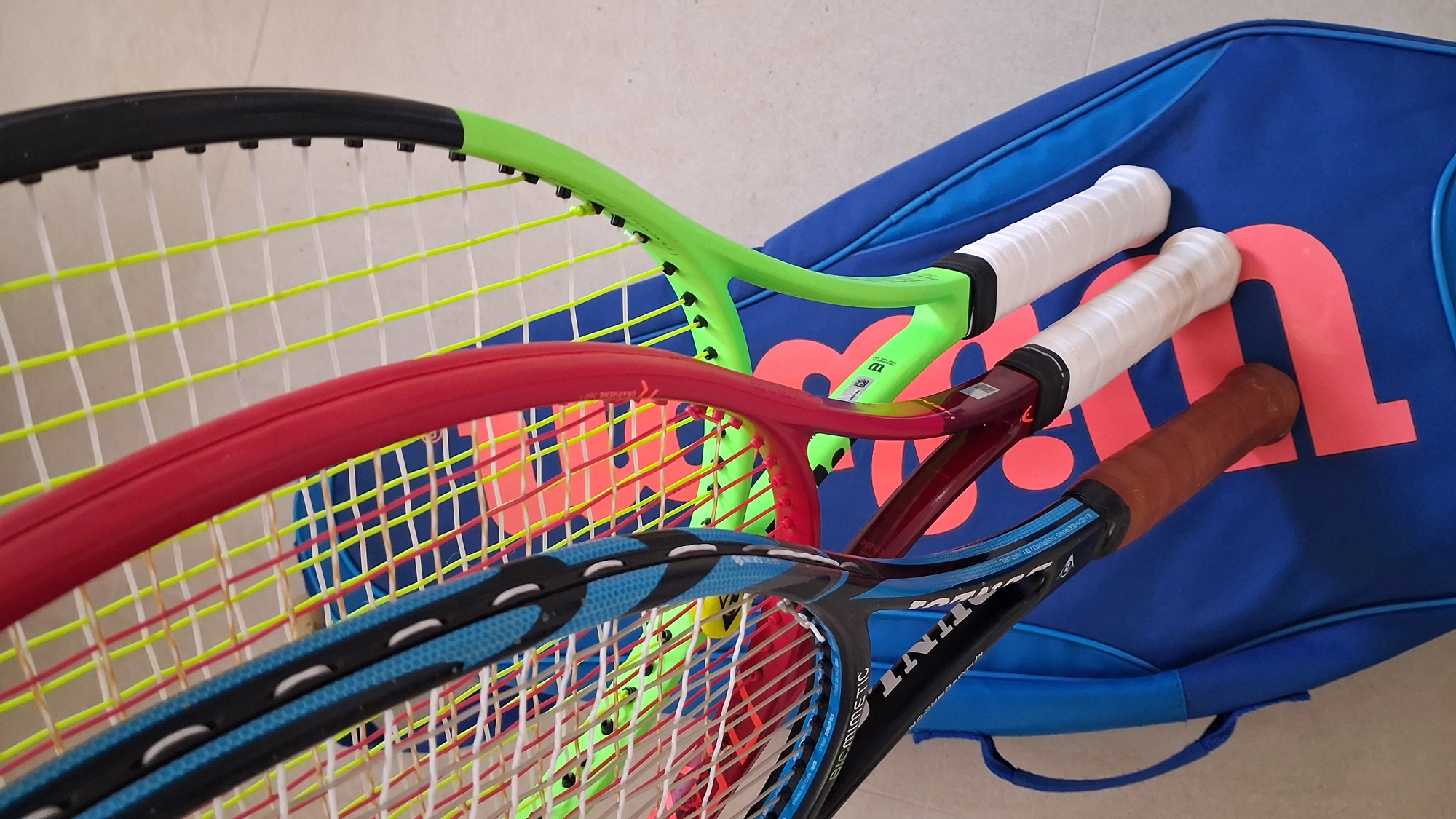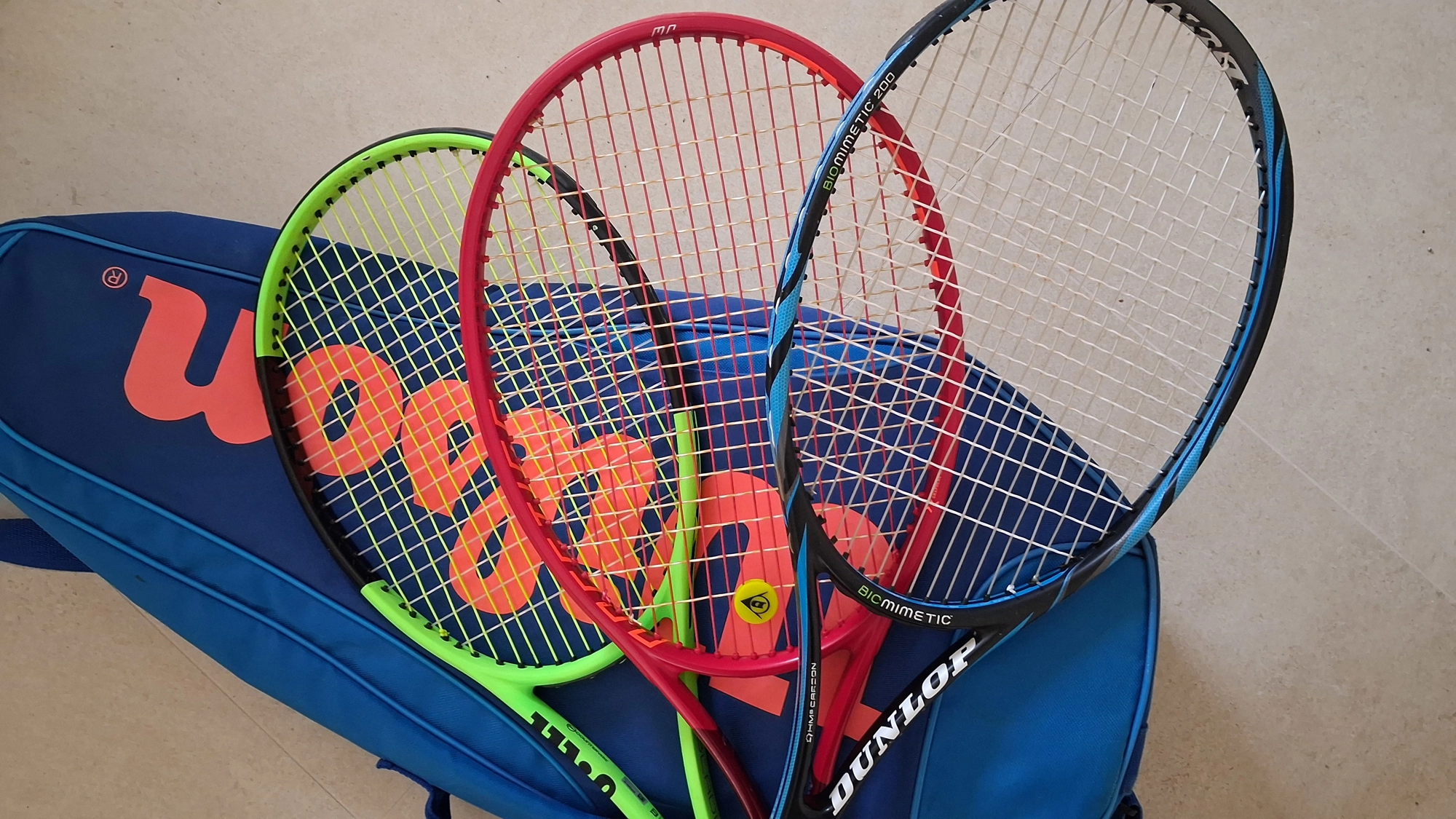 vendo intero blocco di 3 racchette piu borsa wilson blade 18x20 head prestige mp 18x20 dunlop 200 18x20 borsa wilson