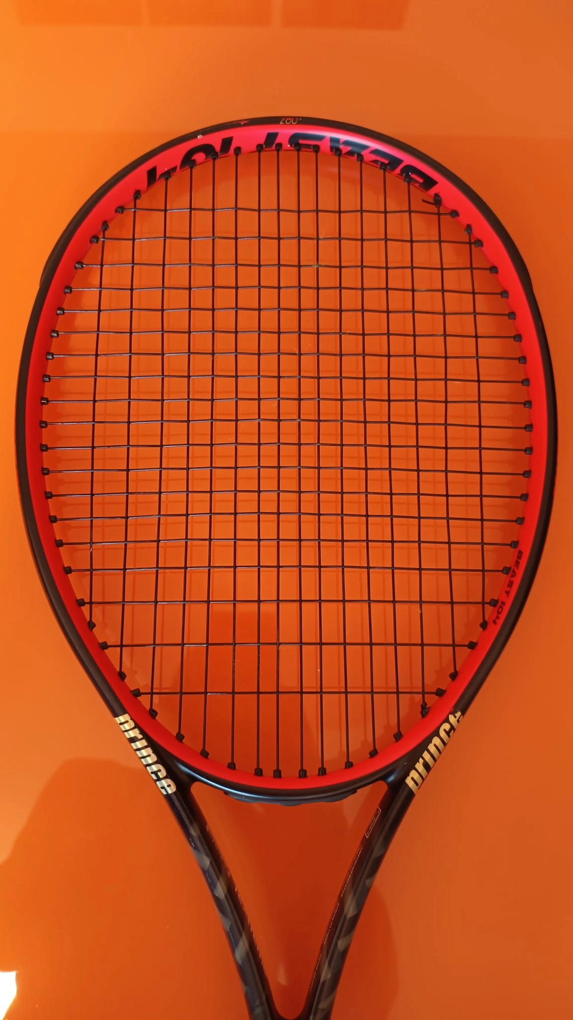 Racchetta Tennis Prince Beast 104 (280g) L4 usata - in buone condizioni. Specifiche tecniche: Ovale: 104" Peso: 280 g Schema corde: 16x19 Bilanciamento: 33 (non incordata) Rigidità: 67 Manico: L4 Profilo: 23-25-22 Corde: Head Velocity 1.30 nere 23-22 kg - (poche ore di gioco, incordata 20-10-2025) Racchetta in buone condizioni, solo qualche piccola sverniciatura data da normale utilizzo. Usata solo per pochi mesi.